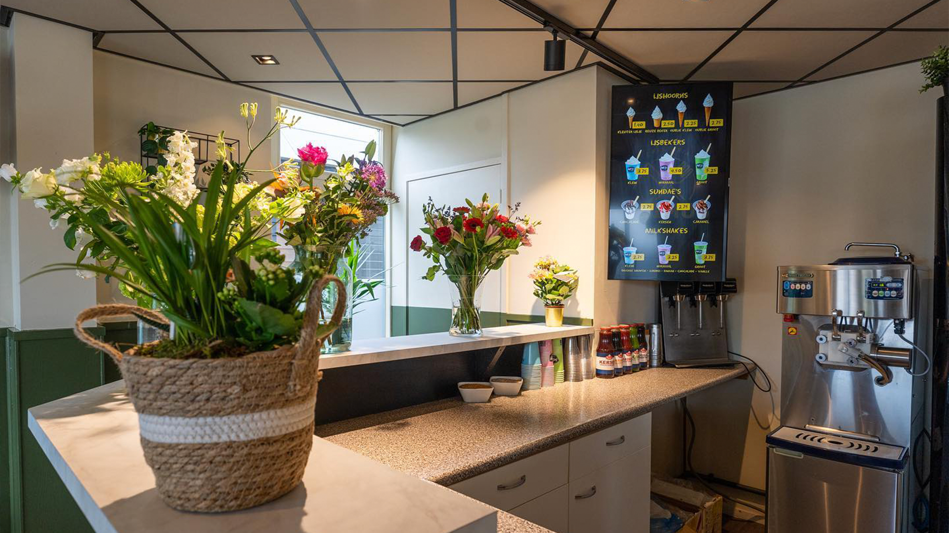 Samen met het team zijn we nu bezig om ons hier te vestigen en iedereen te voorzien van een lekkere snack of iets verkoelends als een softijsje.